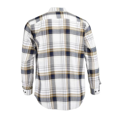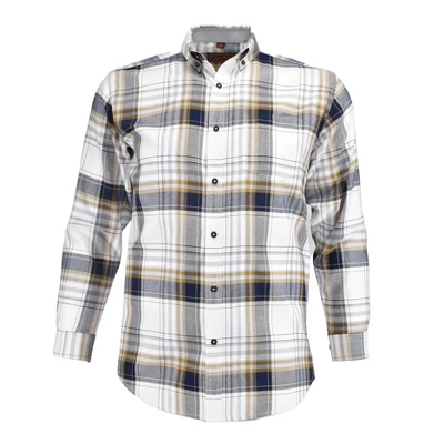 Falcon Bay Men’s Cotton Works classic fit button down oxford sport shirt. Easy care cotton rich khaki plaid oxford weave fabric, button down collar and matching pocket.
