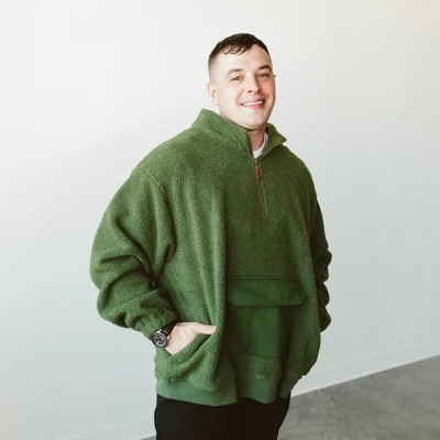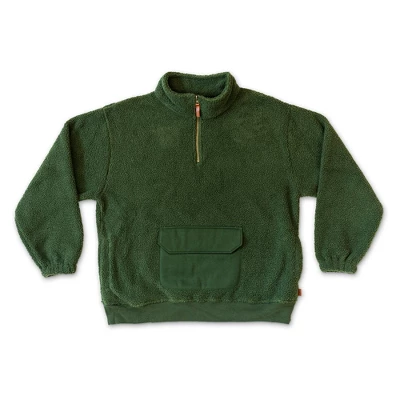 Experience ultimate coziness and style with our plush faux shearling pull-over sweater. Crafted with care and attention to detail, this sweater is designed to keep you warm and snug during chilly days. With a half-zip for easy on and off and a middle pocket for adventures, this pull-over will be your go-to cozy.