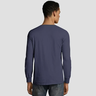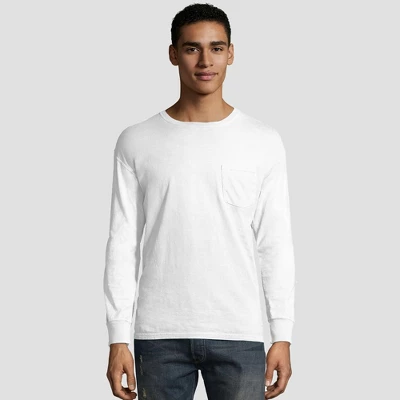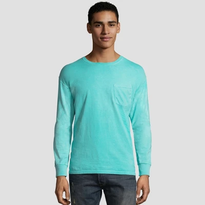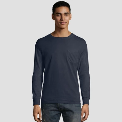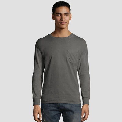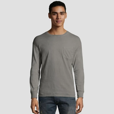 Celebrating more than 100 years of authentic American heritage, the Hanes 1901 collection is classic, comfortable and seasonless. The 1901 collection is a nod to the longstanding comfort and quality that Hanes is known for. This crew neck long sleeve pocket tee is vintage-washed garment-dyed, so each piece has a perfectly imperfect color and completely unique. With set-in collar and double-needle stitching, this mens tshirt keeps its shape and holds up in the wash. Available in a variety of modern colors.