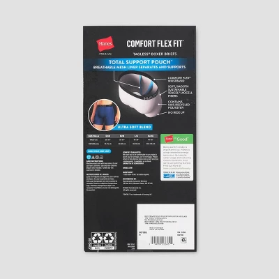 Hanes® Premium Total Support PouchTM Boxer Briefs have an innovative breathable mesh liner that separates and supports for the ultimate in all-day comfort. These boxer briefs are tagless with no ride up. Comfort Flex Fit® stretchable fabric moves with you and is made with ultra soft, smooth and sustainable TENCELTM Lyocell fibers.