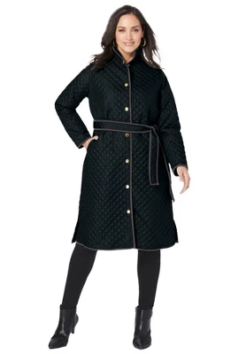 Cozy up through the cooler days in this quilted jacket that’s long on style. Features a self-tie belt for your own custom fit. Corduroy trim on the front and hem adds a timeless, textured touch.