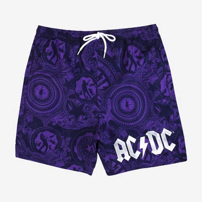 Men’s AC/DC 7″ Elastic Waist Printed Swim Shorts – Dark Purple