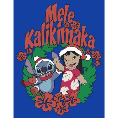 - Strut your stuff with this stylish new Christmas Men’s T-Shirt that is perfect for the holidays! Featuring Lilo and Stitch waving from the inside of a Christmas wreath while wearing Santa hats with “Mele Kalikimaka” printed above them