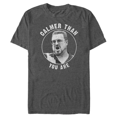 Walter might have an anger problem but he’s always got The Dude’s back so celebrate him with The Big Lebowski Walter Calmer Than You Men’s T-Shirt. The Dude’s bowling buddy, Walter, is encircled by “Calmer Than You” on this funny Big Lebowski tee.