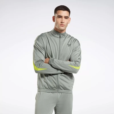 Whether you’re warming up cooling down or just running errands this Reebok track jacket is ready to go when you are. The elastic cuffs and hem stay put as you move. A bold Vector logo across the back represents your life in motion.